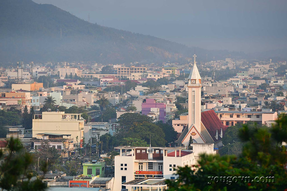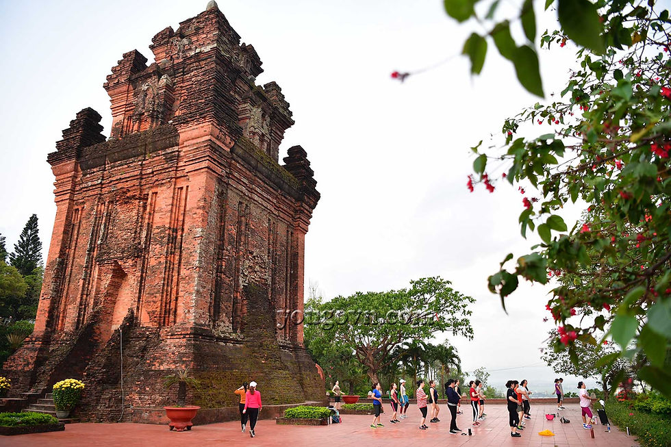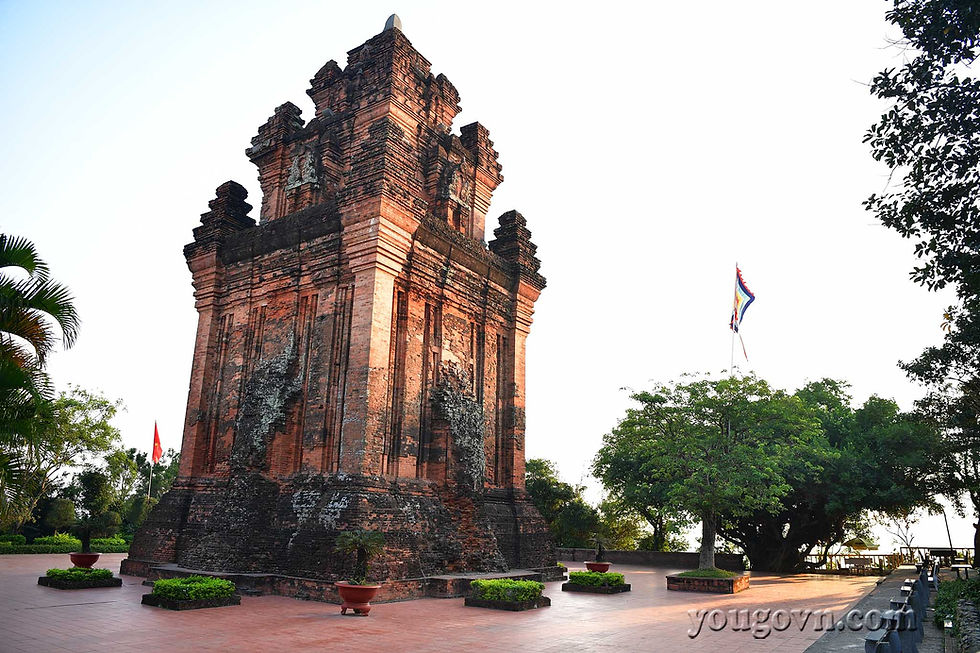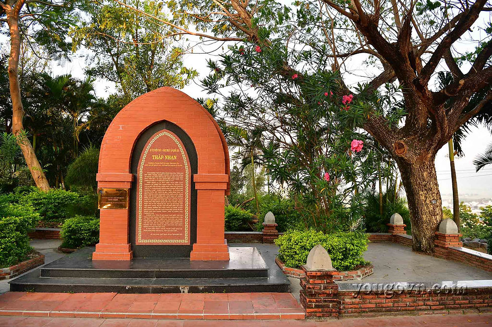 Thap Nhan is an ancient Champa relic in Tuy Hoa, located on the top of Bao Son, also known as Nhan Mountain, facing eastward, overlooking Da Rang bridge, and looking back at Chop Chai mountain, famous mountain of Phu Yen Province.