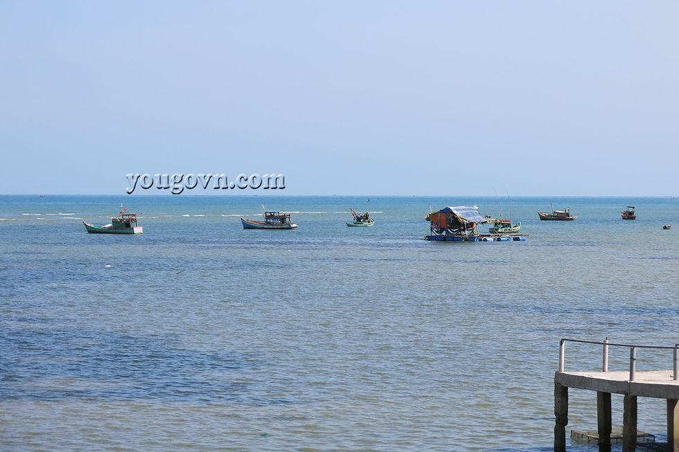 Trên những chuyến bay của Phú Quốc, bạn sẽ nhìn thấy cây cầu của làng chài bắc dài ra phía biển. Đặc điểm một số bãi biển, bờ cát của Phú Quốc rất bằng, không dốc sâu nên cầu được bắc ra khá xa để thuyền có thể vào cảng khi nước cạn.