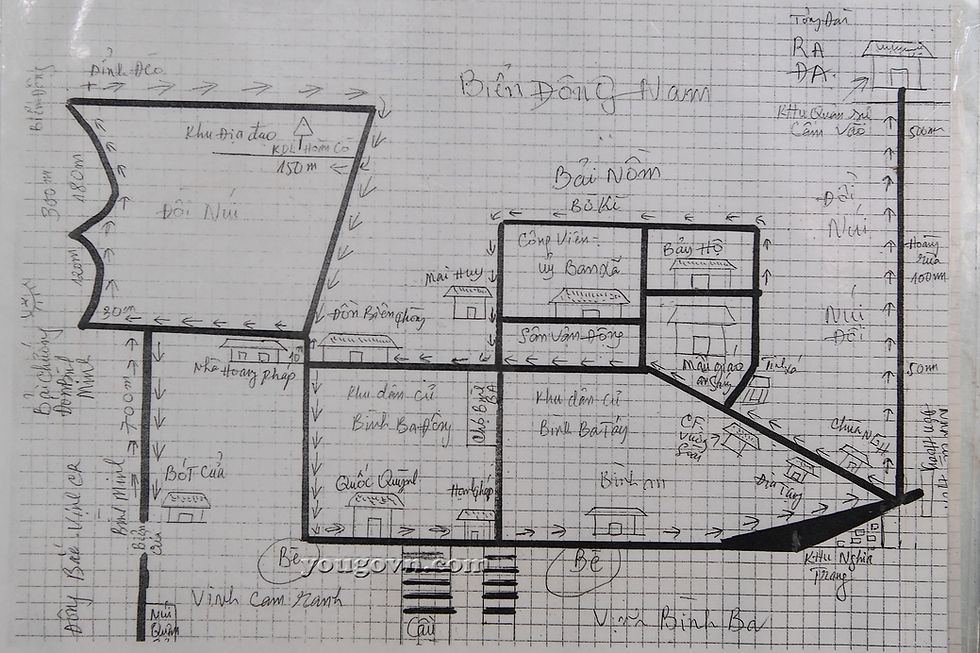 (Bản đồ vẽ trong nhà chú Bảy Hộ - cơ sở lưu trú được ưu chuộng ở Bình Ba)