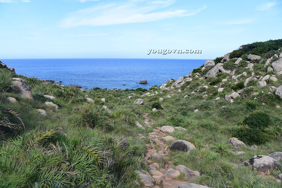 Từ trên dốc cao phía trên nhìn xuống, bạn cũng có thể nhìn thấy những bãi nho nhỏ rất đẹp và trong vắt nhưng kỳ thực nó không thuộc bãi Kinh và những phần đó không thể đi bộ ra được.