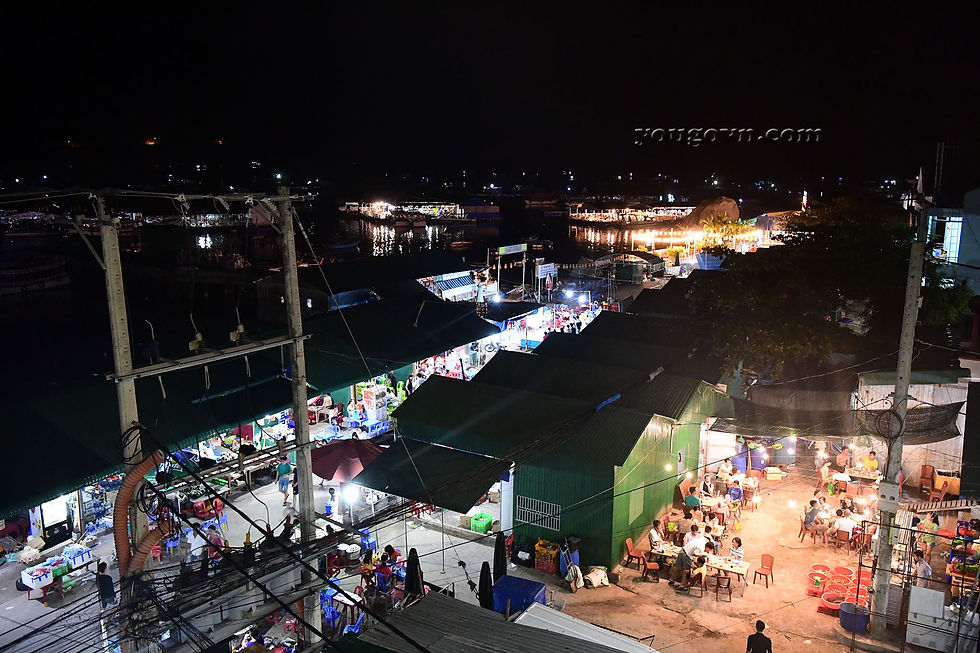 Về đêm Bình Hưng cũng khá nhộn nhịp phía trước cầu cảng. Con đường dài chưa đến 1km ngay trước mặt đảo này là khu đông đúc và nhiều hàng quán nhất từ sáng cho đến đêm. Chỉ cần ra khỏi con đường này vào các ngõ nhỏ, tất cả lại yên bình không chút xao động.