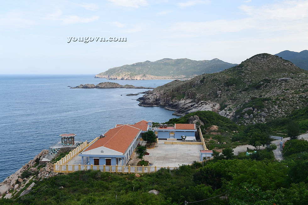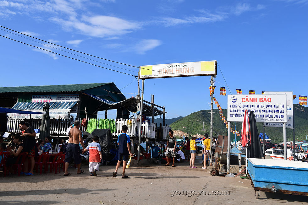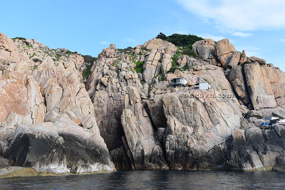 Trên đường ra Vịnh bạn sẽ thấy ngôi nhà đặc trưng trên các đảo Yến của công ty Yến Sào Khánh Hòa. Đó chính là dấu hiệu của hòn đảo gần đó có Yến đang sinh sống.