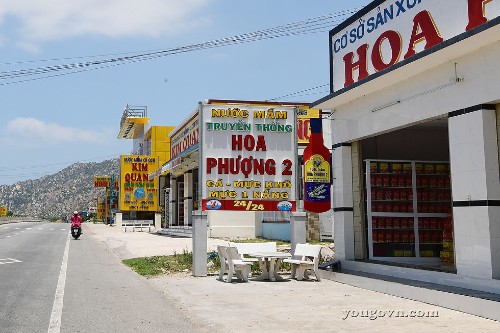 Ninh Thuận cũng là xứ sở của nước mắm. Khi bạn đi xuống bãi biển Cà Ná, gần đến nơi sẽ đậm đặc mùi nước mắm trong không khí. Dọc hai bên đường là từng dãy các nơi giới thiệu sản phẩm.