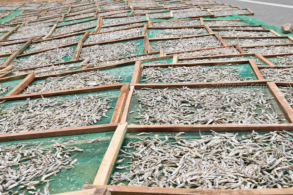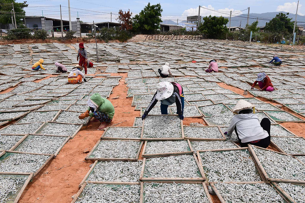 Những xảo cá khô được mang ra mỗi sáng để hứng những tia nắng cháy của Ninh Thuận rồi lại cất vào mỗi khi đêm xuống.