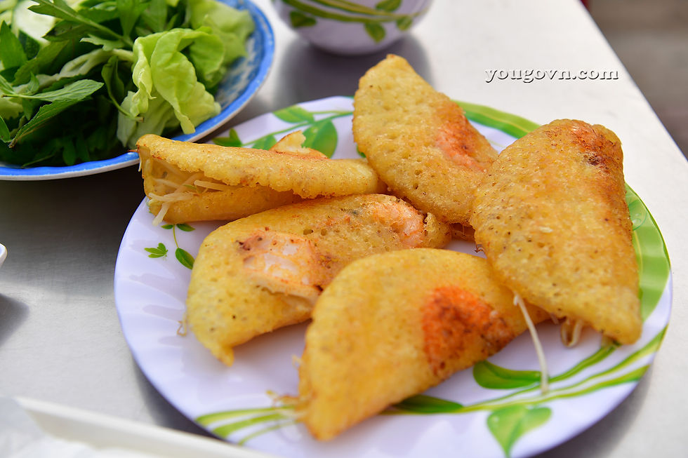 Bánh xèo là một loại bánh phổ biến có ở nhiều nơi trong các tỉnh miền Trung, nhưng với những cách chế biến nước chấm cùng những loại rau sống khác biệt tạo cho bánh xèo nơi đây một hương vị khá quyến rũ.