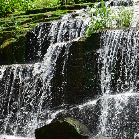 Tuy cùng một bờ đá trải dài nhưng thác có thể chia ra hai phần tương ứng như hai cánh cung. Một phần phía tay trái là một dòng chảy trải dài qua nhiều bậc đá. Những bậc đá này như những bậc thang rất đẹp, đều và cân xứng tạo hình cho con thác một vẻ đẹp thơ mộng. Rất nhiều bức ảnh chụp người đi trên các bậc thác này nhìn rất huyền bí. Nhưng cũng có người từng trượt chân ngã trên này, do vậy bạn phải rất thận trọng không nên leo lên vì thác nước nhiều rêu rất trơn.