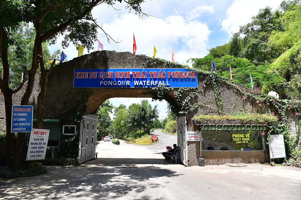 Khi bạn thấy dòng sông chảy phía đầu nguồn của thác là lúc bạn đã đến gần cổng khu du lịch. Vé vào cổng thác Pongour có giá 20.000 vnđ.