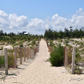 Từ ngã ba có biển chỉ dẫn hòn Yến bạn đi khoảng hơn 100 mét là sẽ có một đường bê tông rẽ tiếp bên phải. Con đường này sẽ dẫn đến một lối xuống biển đầy cát bắt buộc bạn phải để xe máy ngoài để đi bộ vào trong, trừ phi xe của bạn rất khỏe có thể vượt qua cả một chặng đường cát lún.